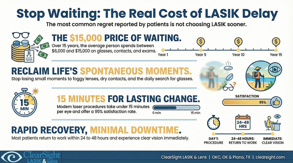 LASIK isn’t free. But waiting has a cost too — it just arrives in smaller increments, which makes it easier to overlook.